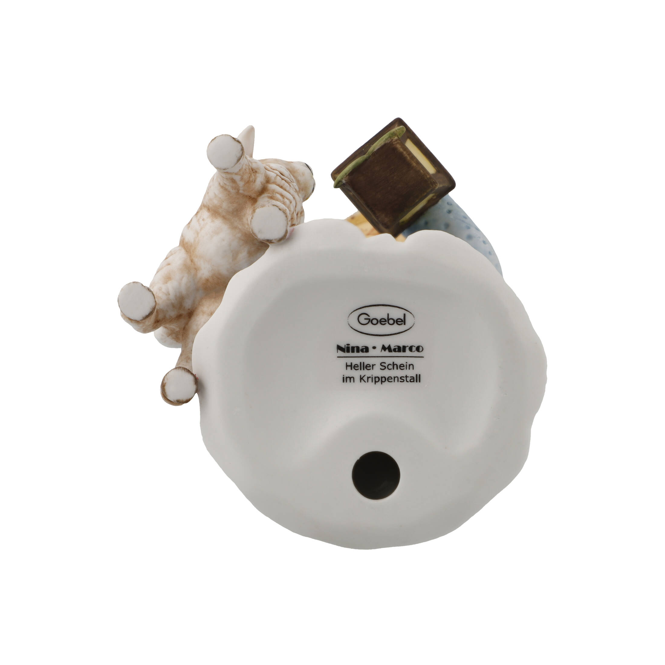 Der kleine Schutzengel ist zu Besuch im Krippenstall. Er möchte allen Tieren schöne Weihnacht wünschen und wird direkt vom kleinsten Lamm neugierig begrüßt. Auf der Laterne ist ein Kristallstein in Form eines Sternes aufgebracht.